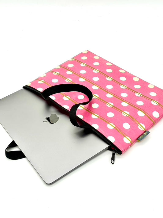 Laptop Sleeve in White/Pink polka dot