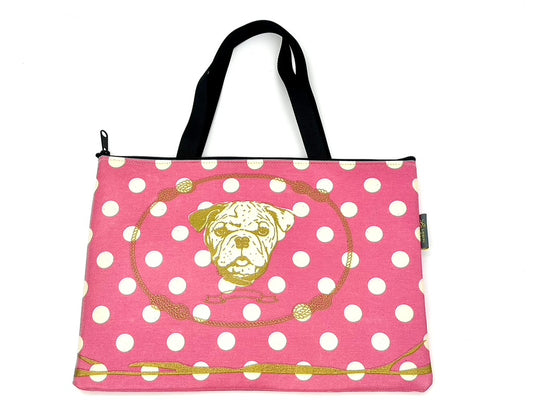 Laptop Sleeve in Gold Bulldog on White/Pink polka dot