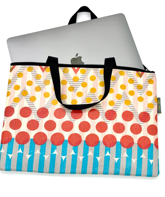Laptop Sleeve in Yellow Chevron and Red Circles