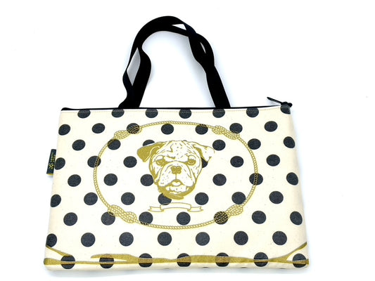 Laptop Sleeve in Gold Bulldog on Black/Cream polka dot