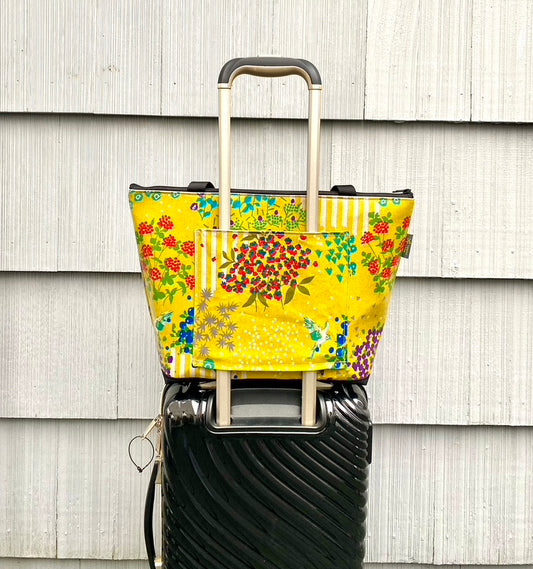 Lydia Tote w/trolley sleeve in Garden Bird Yellow