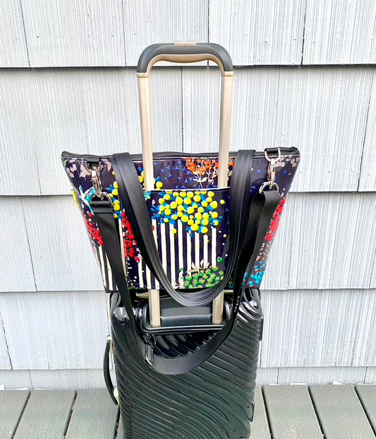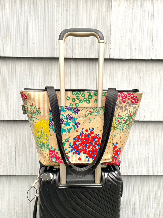 Lydia Tote w/trolley sleeve in Wildflowers black & cream