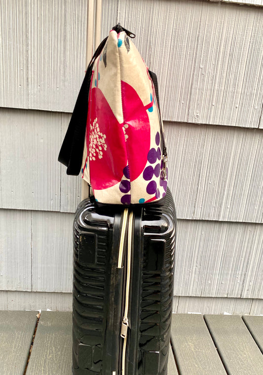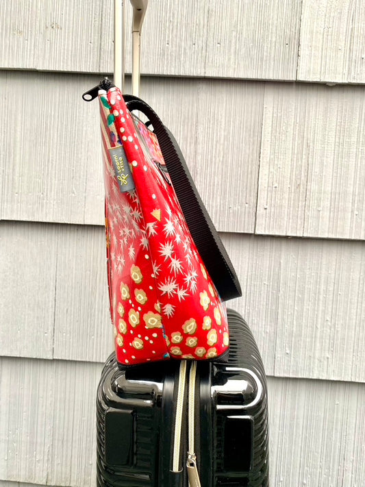 Lydia Tote w/trolley sleeve in Garden Bird Red