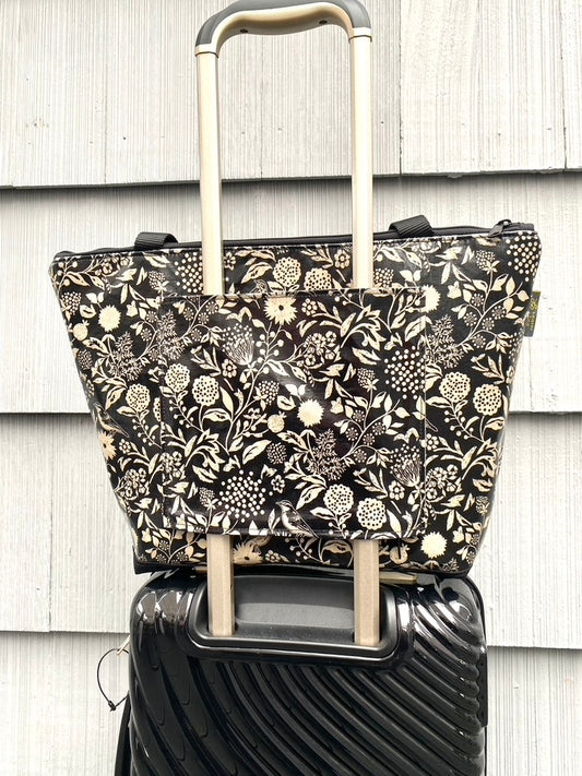 Lydia Tote w/trolley sleeve in Garden Bird Black