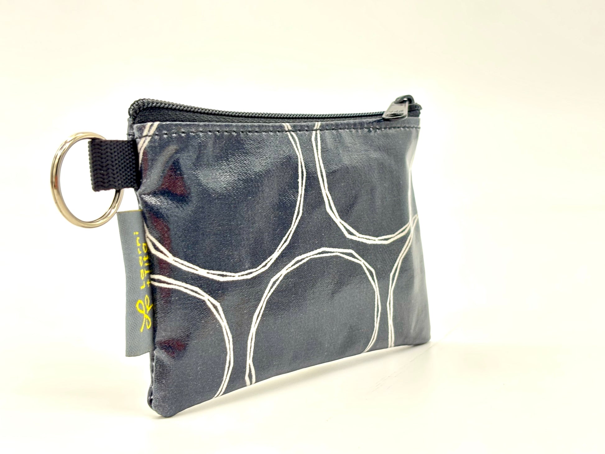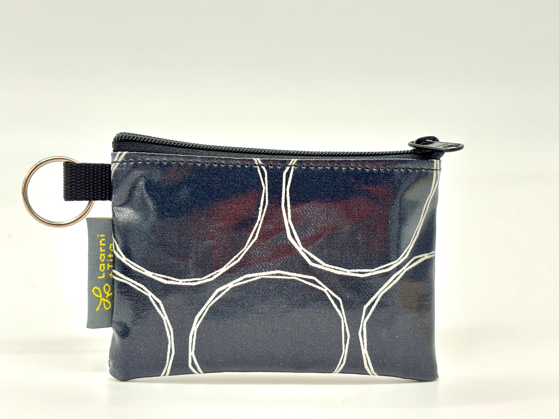 Coin purse or a small wallet for your cards and/or cash. Made of laminated cotton fabric that makes this little thing last for years. Pattern placement will vary. Measures 4 1/4 by 3 inches.